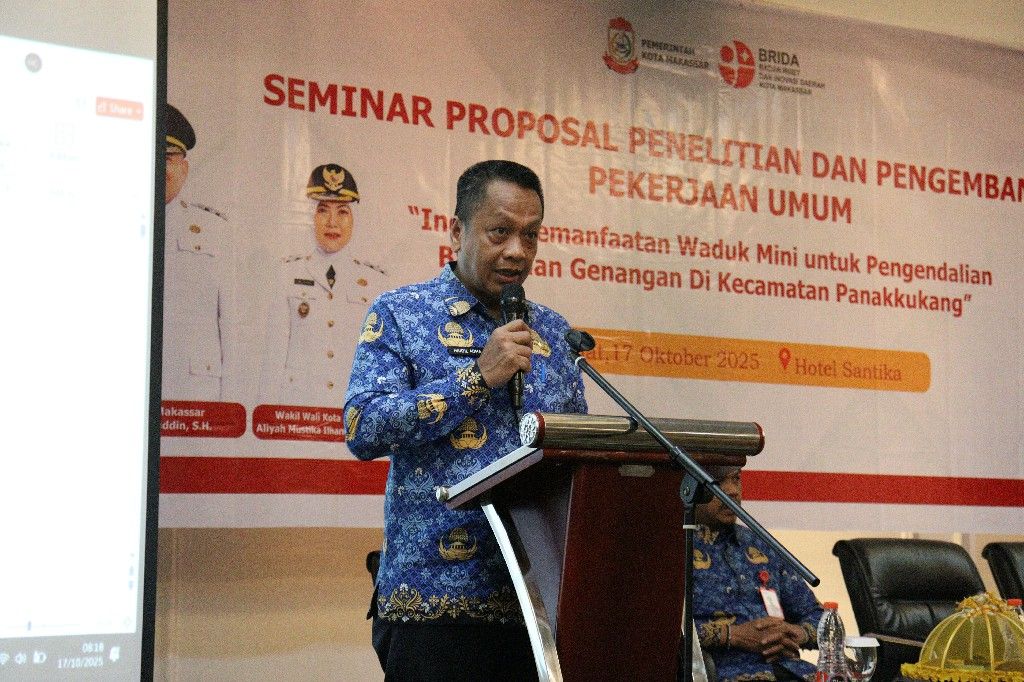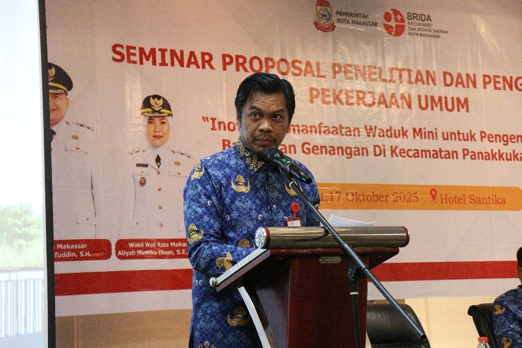 Dr. Firman Hamid Pagarra, S.STP, M.PUB.POL, selaku Asisten III Bidang Administrasi Umum Sekretariat Kota Makassar, menghadiri, membuka sekaligus menjadi narasumber pembanding (reviewer) dalam Seminar Proposal Penelitian dan Pengembangan Pekerjaan Umum bertema “Inovasi Pemanfaatan Waduk Mini untuk Pengendalian Banjir dan Genangan di Kecamatan Panakkukang.” Kegiatan ini juga dihadiri oleh Kepala BRIDA Kota Makassar, Haidil Adha, S.Sos, MM, sebagai narasumber yang memberikan perspektif riset dan inovasi dalam mendukung pengendalian banjir serta pengelolaan air perkotaan secara berkelanjutan.