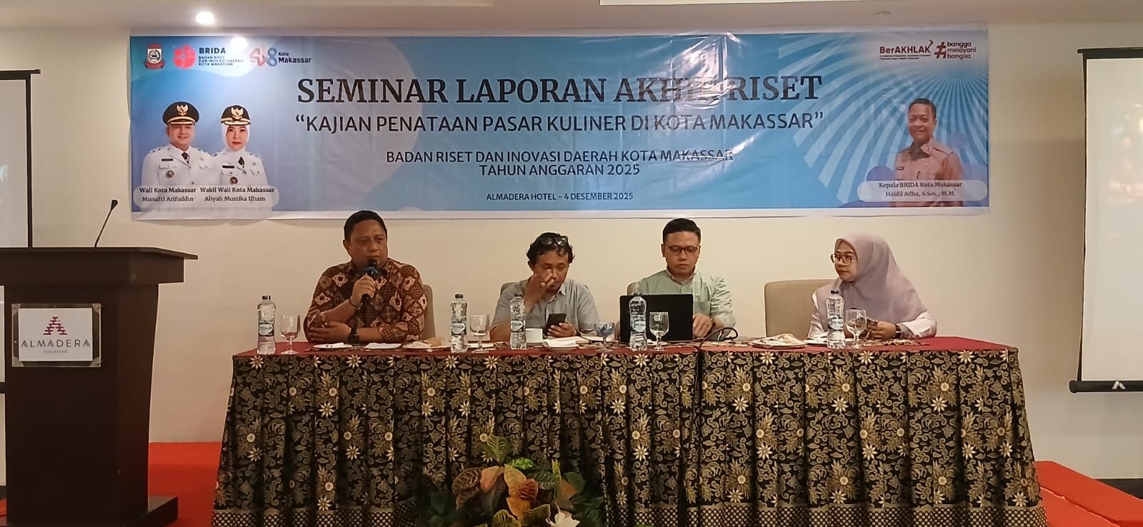 BRIDA Kota Makassar melaksanakan Seminar Laporan Akhir Riset Penataan Potensi Kuliner Jalanan di Kota Makassar, sebagai bagian dari Sub Kegiatan Perumusan Rekomendasi atas Rencana Penetapan Peraturan Baru dan/atau Pelaksanaan Peraturan di lingkungan BRIDA Kota Makassar Tahun Anggaran 2025. Kegiatan ini dibuka dan dihadiri oleh Koordinator Riset BRIDA Kota Makassar, Dody Agriyanto, AP., M.Si., mewakili Kepala Badan Riset dan Inovasi Daerah, untuk membahas hasil akhir penelitian serta rekomendasi kebijakan terkait pengembangan dan penataan potensi kuliner jalanan di Kota Makassar. π Tanggal: Kamis, 4 Desember 2025 π§ Waktu: 12.45 WITA β Selesai π Lokasi: Almadera Hotel Makassar, Lantai 6, Jl. Somba Opu No. 235, Maloku, Ujung Pandang, Kota Makassar #BRIDAMakassar #RisetKulinerJalanan #StreetFood #KebijakanDaerah #InovasiDaerah #MakassarMULIA #MunafriArifuddin